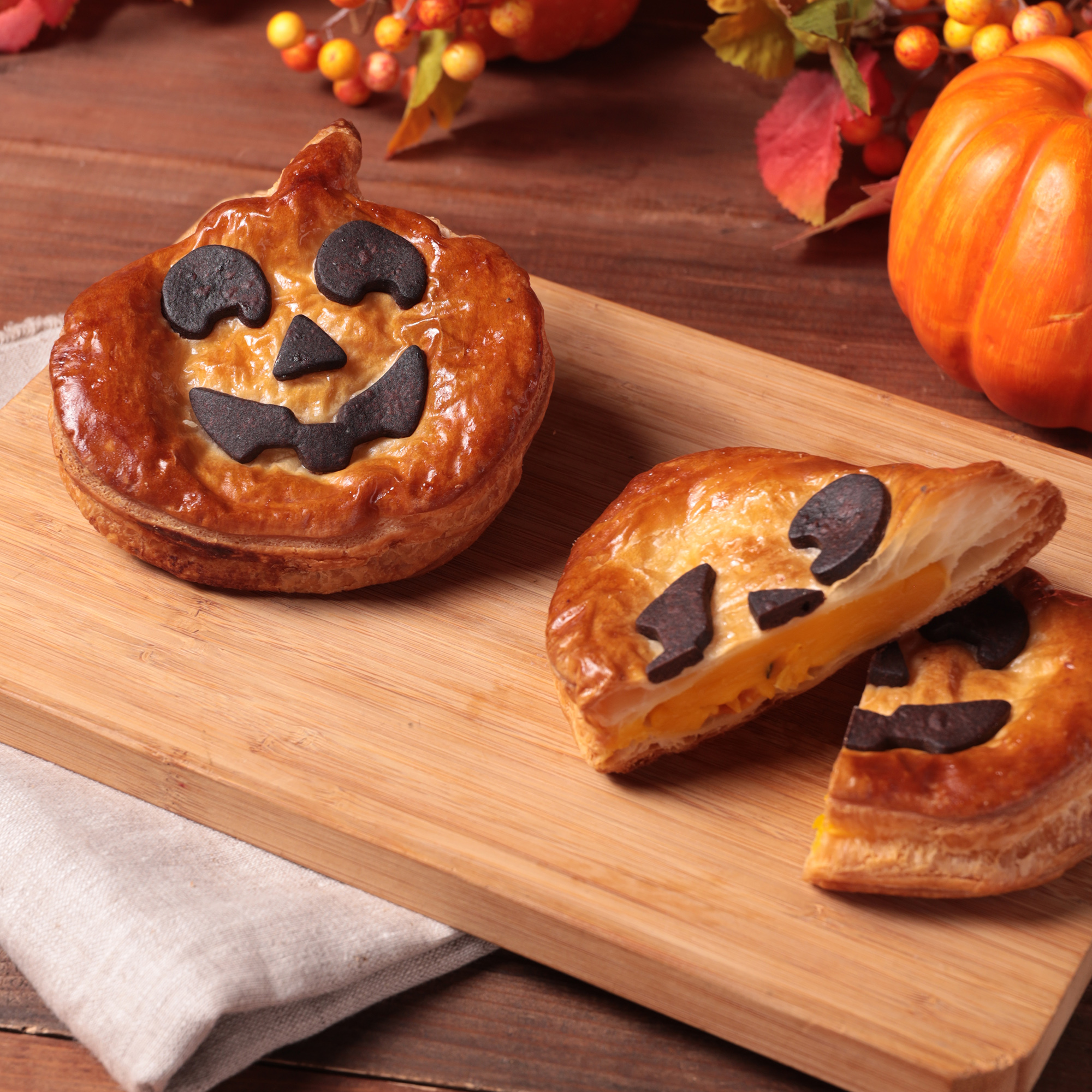 白パンにチョコクリームを包み、可愛いらしいおばけの形に仕上げたハロウィン限定の「おばけパン」をはじめ、サクッと香ばしいかぼちゃ型のパイにかぼちゃクリームを包み、ジャック・オ・ランタンの顔を描いて仕上げた「パンプキンパイ」など期間限定の味わいをご用意しております。