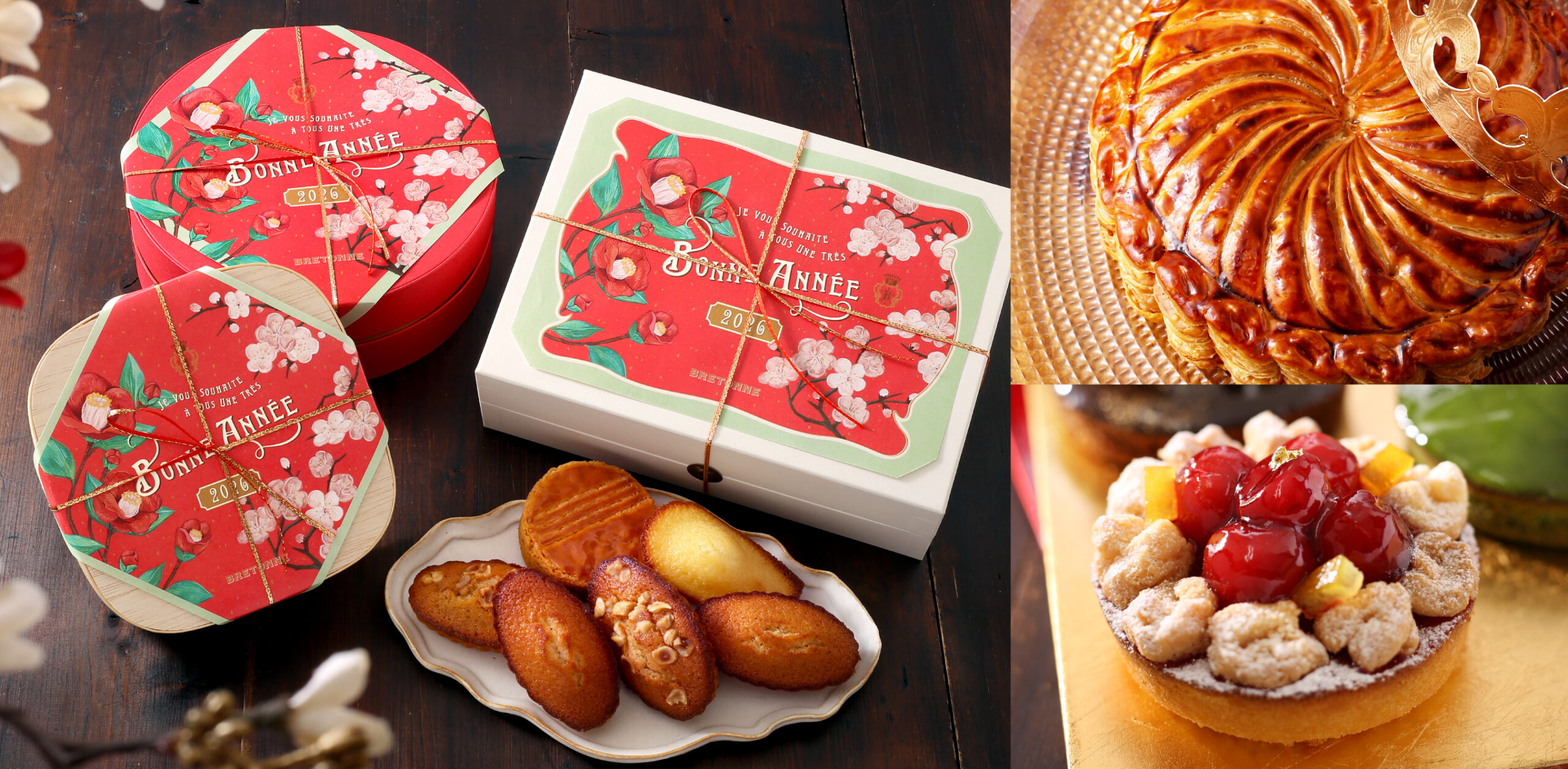 フランス・ブルターニュの美味しさをお届けする焼き菓子専門店「ビスキュイテリエ ブルトンヌ」では、お正月シーズンに合わせ、ガレット・デ・ロワやガトー・ナンテなどの焼き菓子、華やかな椿や梅のイラストをあしらった年末年始のご挨拶にぴったりなアソートギフトなどを販売します。各商品ご予約も承りますのでぜひご利用ください。