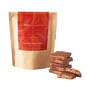 香ばしい食感のキャラメルナッツチョコレート。軽く煮詰めたキャラメルにローストしたアーモンドやくるみを加えてカリっと食感のヌガーに仕上げ、ミルクチョコレートをコーティングしました。一度食べるとクセになる魅惑のおいしさです。
