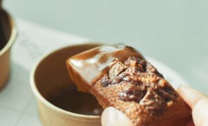 Murirオリジナルミルクチョコレートをたっぷりと使用した、会場限定の焼きたてフィナンシェ。香ばしく香るバターとヘーゼルナッツのコク深い風味のフィナンシェ生地に、ミュリルのチョコレートを加え、やさしい味わいに。天面にはガナッシュチョコレートを絞り、オリジナルチョコレートをトッピング。濃厚な風味が際立つ、香り豊かで、やわらかな食感に仕上げました。