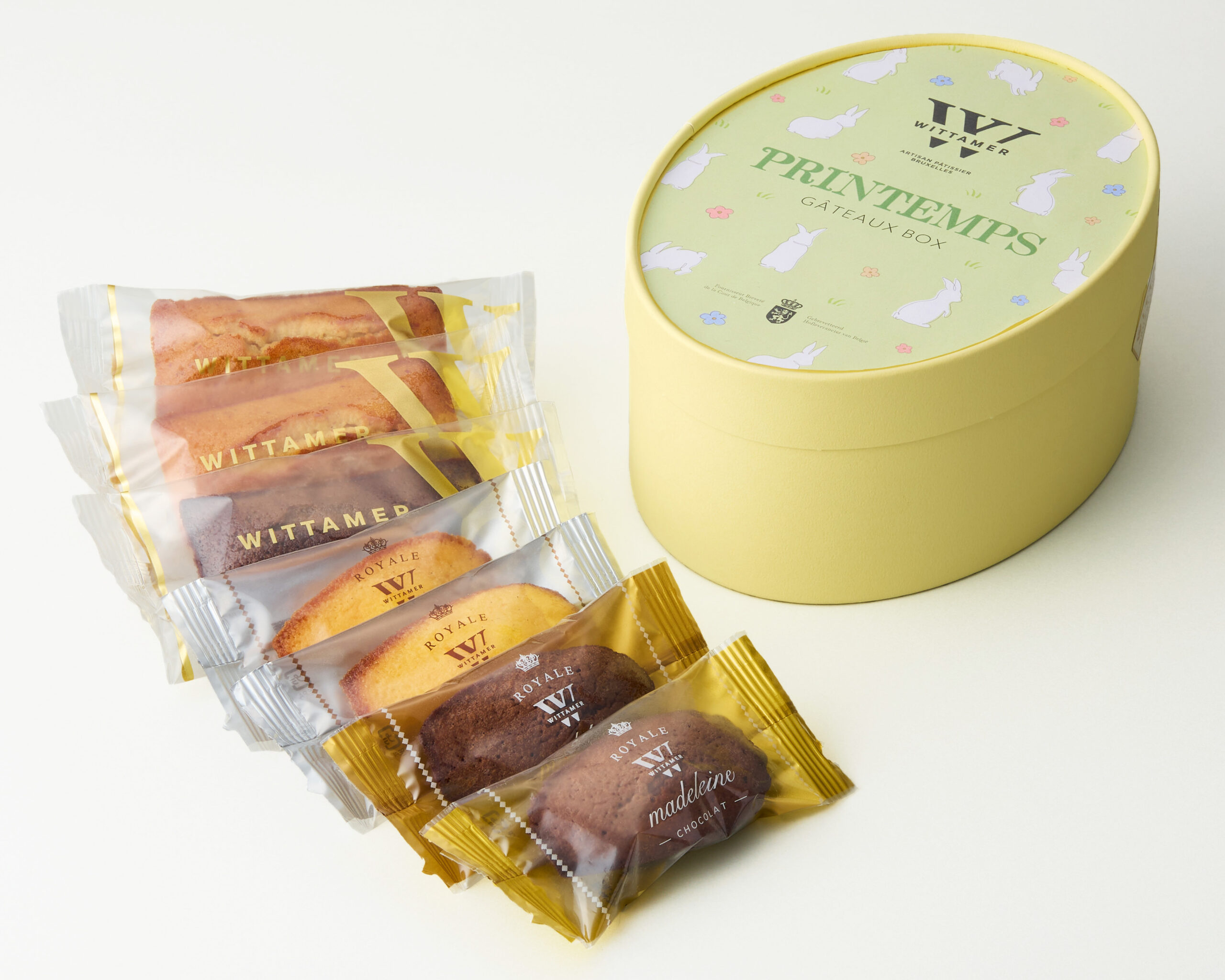 ふんわりと風味豊かに焼き上げた “ロイヤル・マドレーヌ” と、焦がしバターが香ばしいしっとりとした “フィナンシェ”。バニラやショコラ、アーモンドの風味と優しい甘さが広がるとっておきの焼き菓子を詰め合わせました。イースターエッグをイメージした、たまご型のBOXにはうさぎたちが野原で遊ぶ様子を描いた春にぴったりの華やかなギフトです。