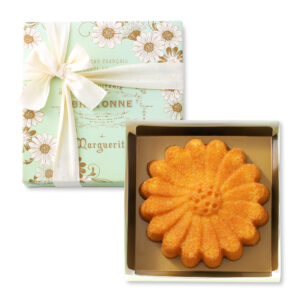 発酵バターのコクと香ばしいアーモンドを合わせた風味豊かな生地に、甘く華やかなバニラの香りが重なり合う、贅沢な美味しさのケーク。「誠実」「心に秘めた愛」「真実の友情」などを花言葉に持つ、可愛らしいマーガレットの形に焼き上げました。きめ細やかでしっとりとした食感と、シンプルながら奥深い味わいは、大切な方への贈り物やブライダルギフトにもおすすめです。