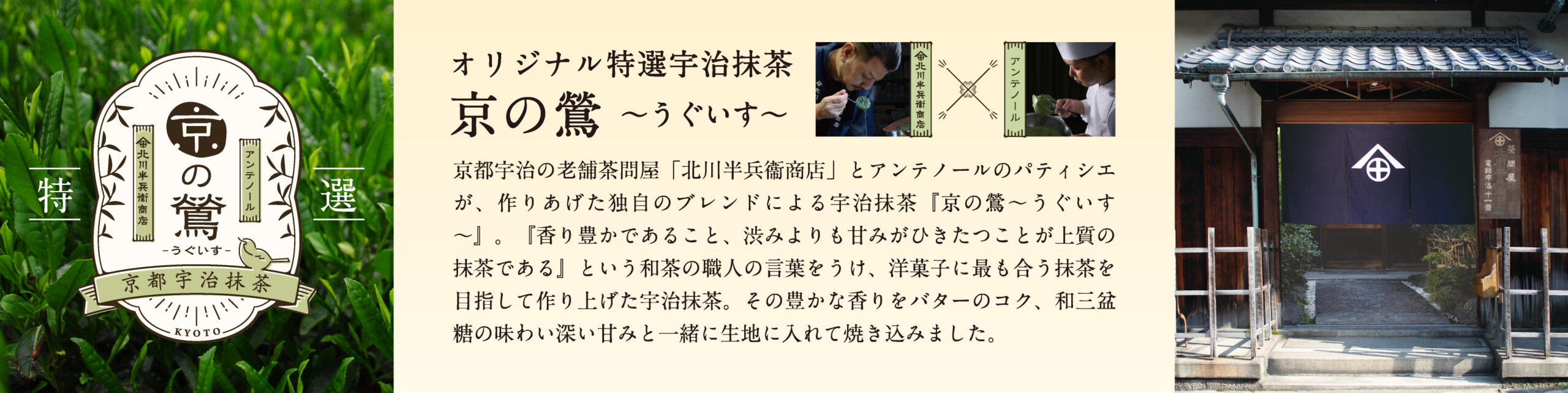 お取り寄せ限定! アンテノール × 京都の老舗茶問屋「北川半兵衞商店」宇治抹茶を存分に楽しむ大人の贅沢なケーキをお届けします