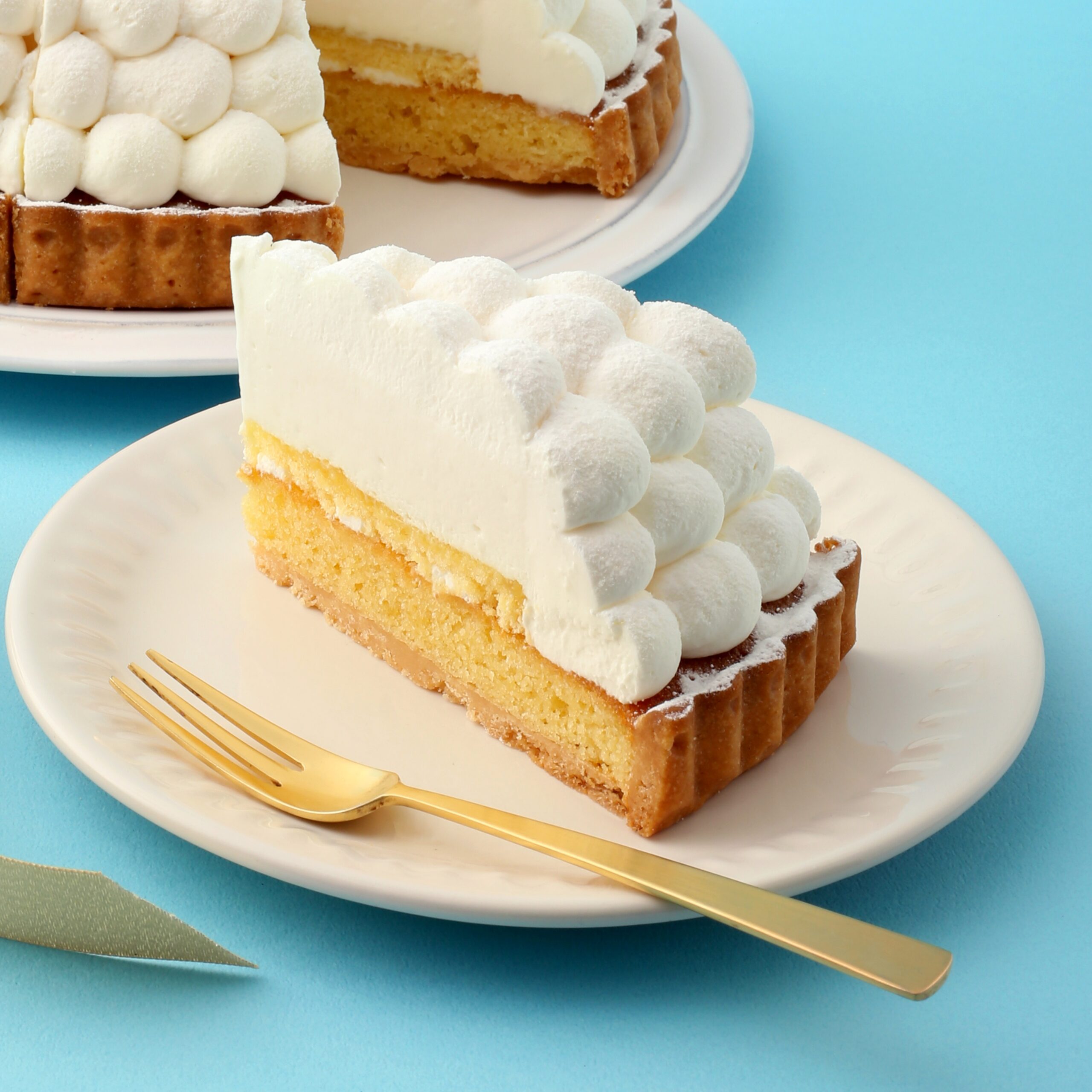 クリームチーズの風味豊かなフロマージュムースに、北海道産生クリームをブレンドしたミルク感豊かなクリームを絞り上げた爽やかなタルト。